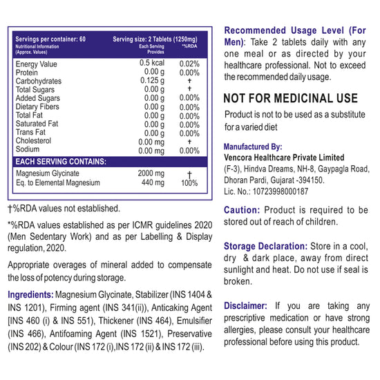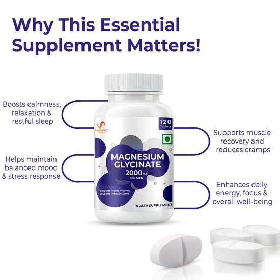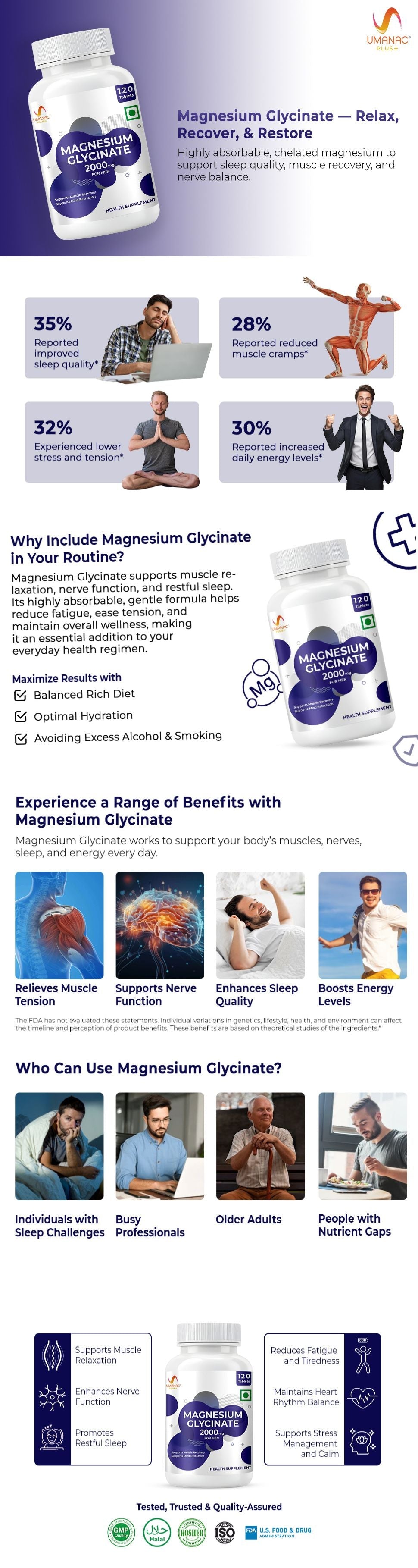 Magnesium Glycinate - 2000 mg | Muscle, Sleep & Mood Support | 120 Tabs - Umanac Plus