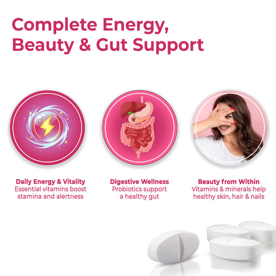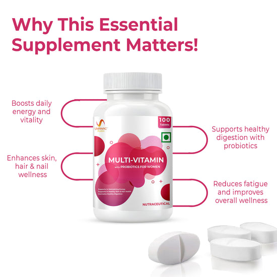 Women’s Multivitamin + Probiotics | Energy, Skin, Hair & Gut Support | 100 Tabs - Umanac Plus